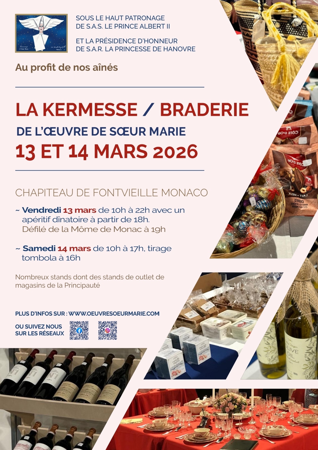 Kermesse de l’Œuvre de Sœur Marie au profit des aînés avec de nombreux stands : brocante, jouets, vêtements, livres, bar, buffet, pâtisserie, et divers stands internationaux pour vous régaler les papilles.