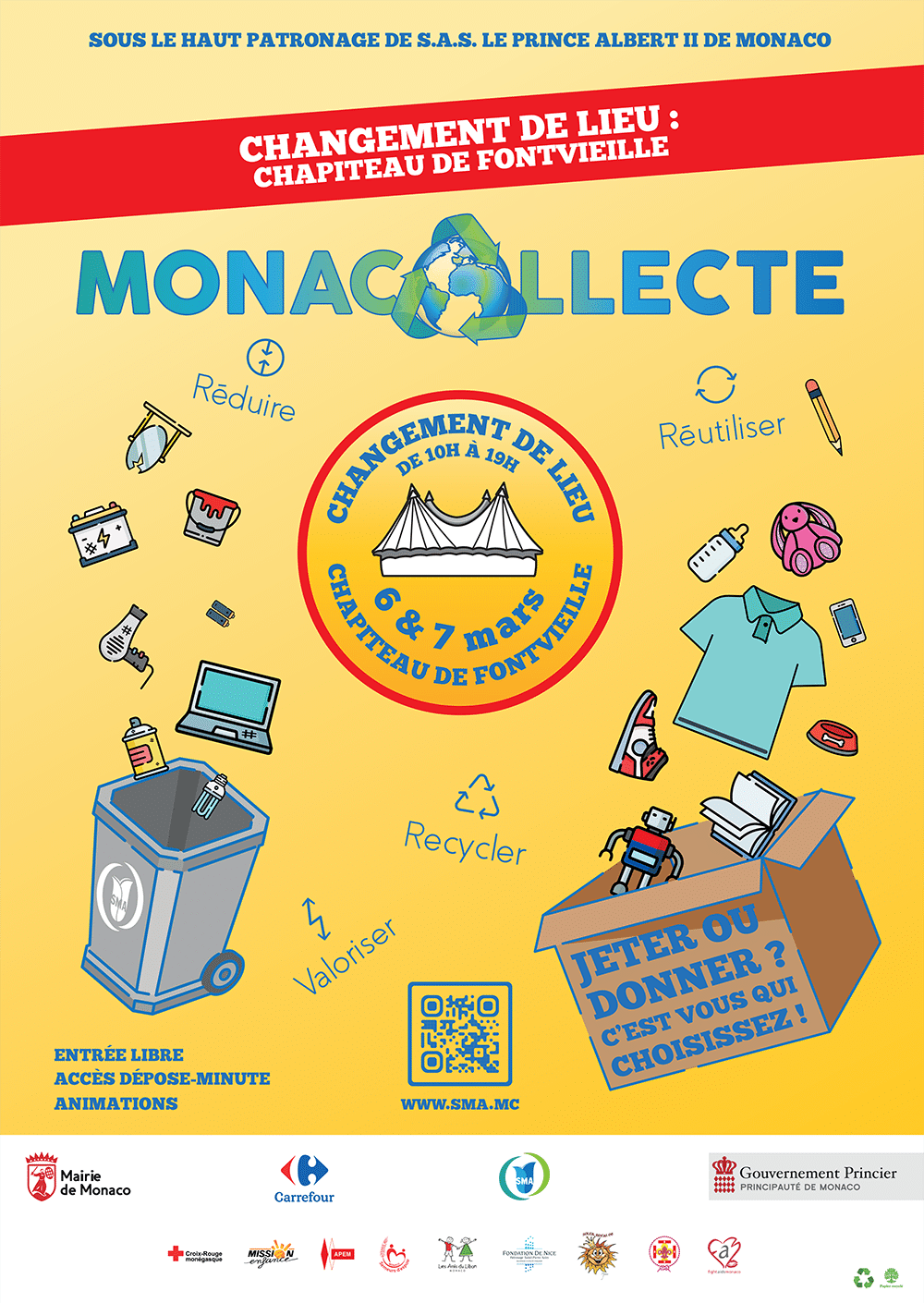 La Société Monégasque d’Assainissement (SMA) et la Direction de l’Aménagement Urbain, en partenariat avec la Mairie de Monaco, vous invitent à la 4e édition de MonaCollecte, l’évènement solidaire autour de la collecte, de la réutilisation des objets et du recyclage des déchets.